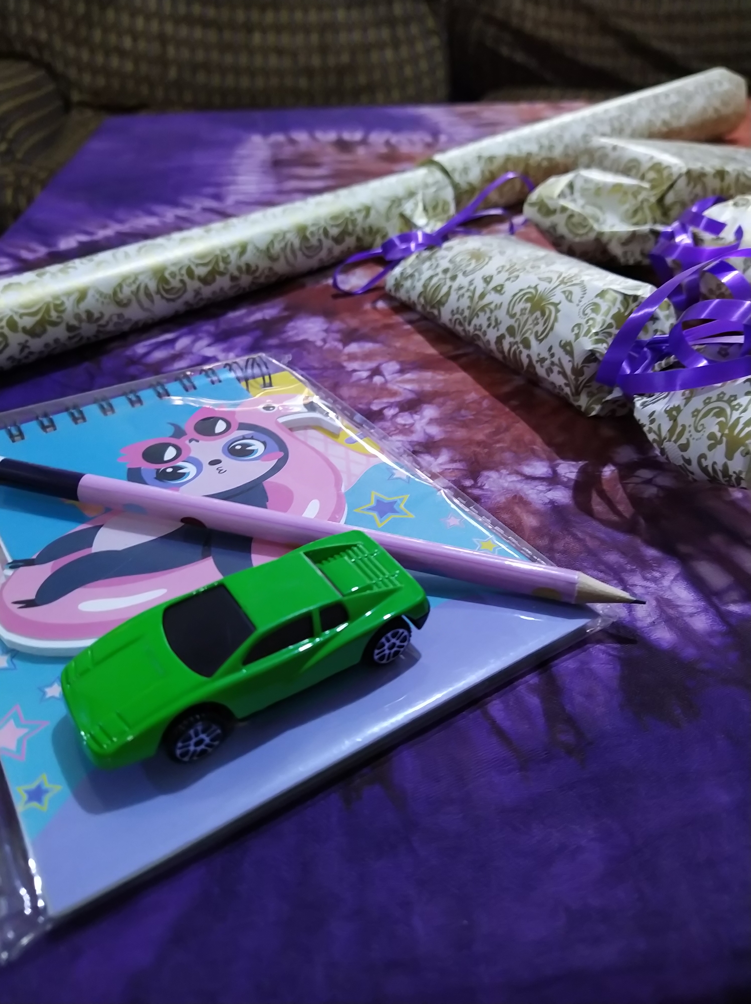 On ollut kiva jakaa lahjoja, joita mukanani kannoin. Toivon, että ne tuovat monelle jonkin verran sitä joulumieltä. Koulutarvikkeet sopivat monen ikäiselle lapselle ja sopivat myös hienosti minun teemaani. Kiitos, kun olet tavaroita matkassani lähettänyt.